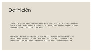 La psicología es la ciencia que estudia los procesos mentales y el comportamiento humano mediante métodos empíricos. Se divide en varias ramas, incluyendo la psicología del desarrollo, que estudia el comportamiento a lo largo de la vida; la psicología experimental, que utiliza experimentos para comprender conceptos como el aprendizaje y la memoria; y la psicología social, que examina cómo las personas interactúan entre sí y se influyen mutuamente.