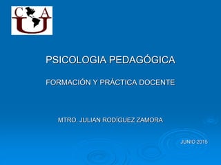 Este documento describe las funciones y responsabilidades de un maestro de psicología pedagógica, incluyendo ser un agente clínico, promotor de aprendizajes significativos, investigador, coordinador de aprendizaje grupal y asesor de estudiantes. También discute la importancia de la capacitación y actualización continua de los maestros, y presenta los componentes clave de un sistema didáctico como objetivos, contenidos, relaciones de comunicación, medios técnicos, organización y evaluación.