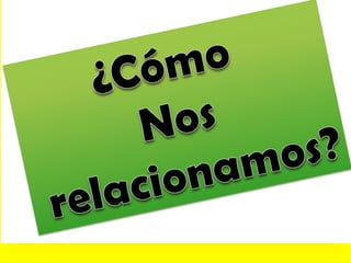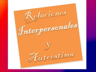 Este documento resume conceptos clave sobre relaciones interpersonales y autoestima. Explica que las relaciones humanas se basan en la comunicación entre individuos de una sociedad y que una comunicación efectiva es fundamental para una buena relación. También define la autoestima como la autovaloración de una persona y explica que conocerse a sí mismo, tener autocontrol y autonomía son componentes importantes de una alta autoestima. Finalmente, señala que comprender estos temas puede ayudar a los estudiantes a desarrollarse con mayor seguridad en la sociedad.