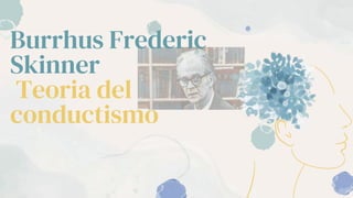 Burrhus Frederic Skinner fue un psicólogo estadounidense conocido por ser el principal difusor del conductismo. Propuso que la psicología debía estudiar la conducta observable sin hacer suposiciones sobre procesos internos. Su invento más conocido fue la caja de Skinner, con la cual estudió cómo los animales reforzaban su conducta en relación a las consecuencias de sus acciones.