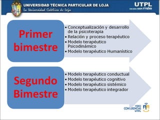 El documento proporciona una descripción general de la psicoterapia. Explica que la psicoterapia busca el cambio de conductas, cogniciones o estados emocionales mediante la comunicación entre un profesional y una persona que busca alivio. También describe los elementos comunes en las definiciones de psicoterapia como su enfoque científico y la creación de una relación terapéutica. Finalmente, resume brevemente los modelos psicoanalítico, humanista y algunas técnicas como la terapia gestalt y cent