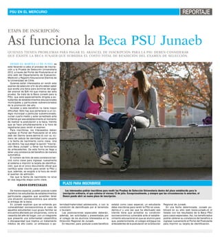 2) Se explica cómo funciona la Beca Junaeb para subsidiar el costo total de rendición de la PSU, dirigida a estudiantes de colegios municipales y particulares subvencionados.