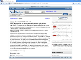 PubMed es un motor de búsqueda gratuito de la base de datos MEDLINE que contiene resúmenes y citas de artículos biomédicos desde 1966. Los usuarios pueden buscar artículos por tema, autor, revista o palabras clave de MeSH. El vocabulario controlado MeSH se usa para indizar los artículos de MEDLINE y facilitar búsquedas efectivas.