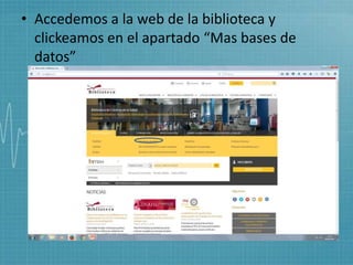 El documento describe los pasos para realizar una búsqueda en las bases de datos PubMed y CINAHL para encontrar artículos sobre el cuidado enfermero a domicilio para personas con esquizofrenia o trastorno bipolar. Incluye traducir las palabras clave al inglés en el tesauro DeCS, desarrollar una estrategia de búsqueda, filtrar los resultados por fecha y formato, seleccionar artículos, y generar una bibliografía en formato Vancouver.