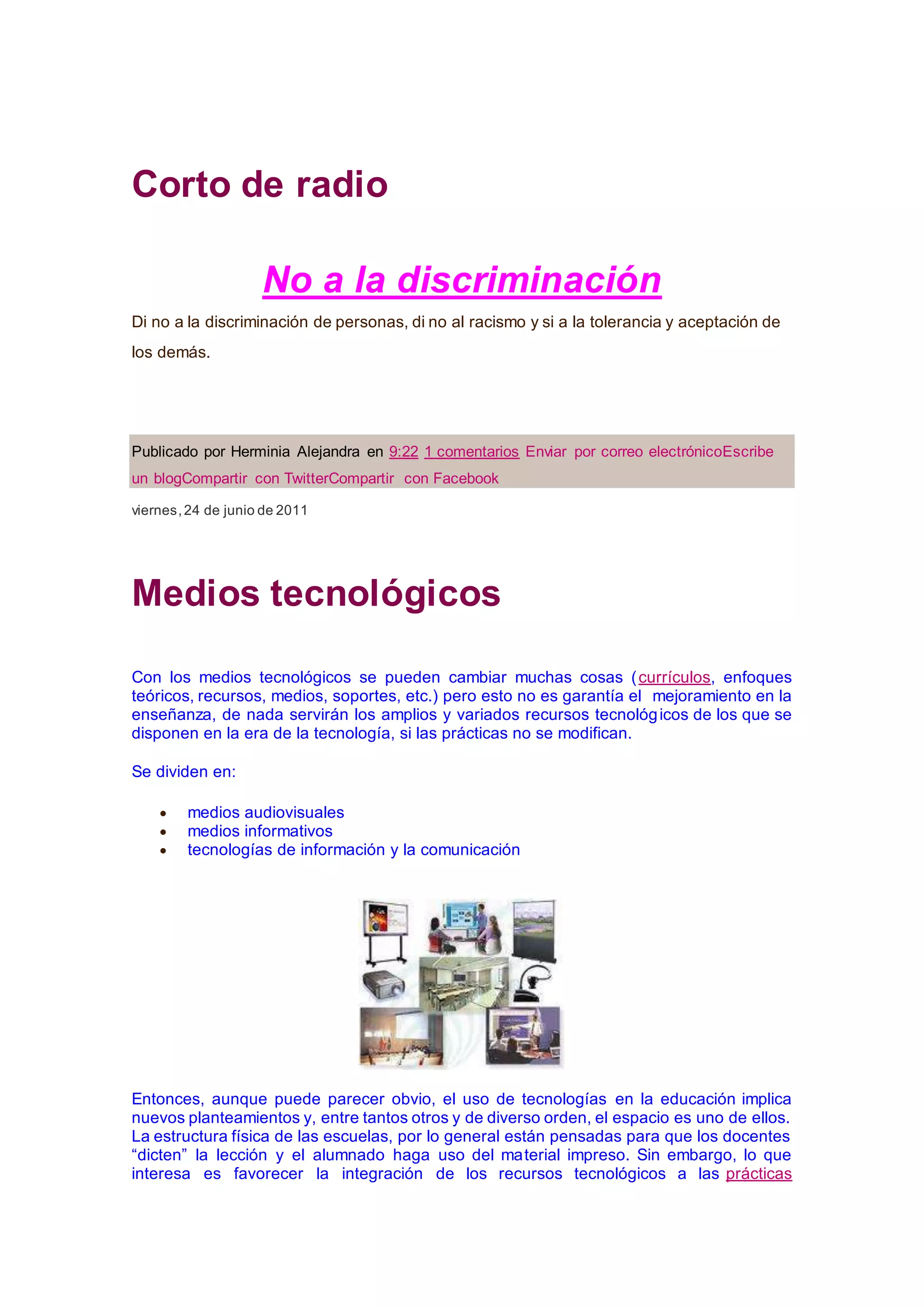 Este documento discute el uso de recursos tecnológicos y no tecnológicos en la enseñanza. Explica que los recursos tecnológicos pueden mejorar la enseñanza pero no garantizan mejoras en el aprendizaje por sí solos. Se necesitan prácticas pedagógicas adecuadas para que los recursos tecnológicos contribuyan al desarrollo de habilidades y comprensión conceptual en los estudiantes. También describe varios tipos de recursos como audiovisuales, informáticos y no te