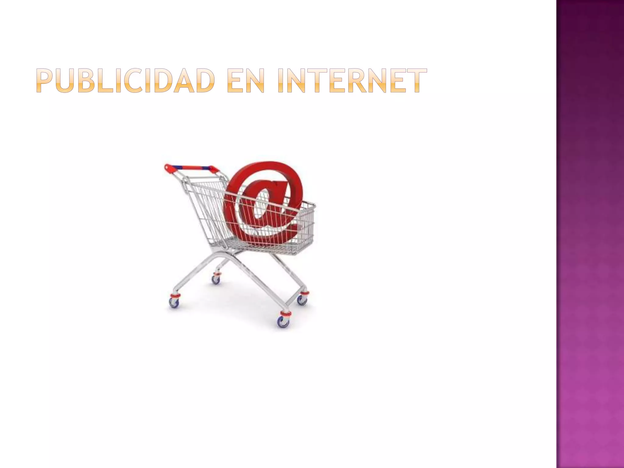 La publicidad en Internet utiliza elementos como texto, enlaces, banners, videos y animaciones en páginas web y blogs para dar a conocer productos a usuarios en línea. Servicios como Google AdSense y AdWords tienen sistemas sólidos de publicidad en línea donde las páginas se colocan en buscadores relevantes y cobran por clics. Los blogs también contienen anuncios de Google, banners y logos para promover páginas.