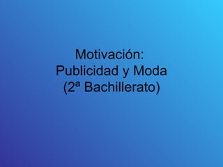Este documento discute la motivación de la publicidad y la moda en la sociedad de consumo. Explica que el consumo se ha convertido en algo vital para las personas y que la publicidad contribuye a sustentarlo. También analiza los tipos de motivación intrínseca y extrínseca, y los aspectos emocionales que se usan en la publicidad. Finalmente, describe las características, estrategias y funciones de la publicidad y las modas.