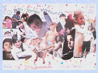 El documento presenta 4 afiches publicitarios. El primero promueve ropa para chicas de todos los talles. El segundo promueve un nuevo banco para mujeres independientes. El tercero promueve un juego de tenis no violento. Y el cuarto promueve la integración e igualdad entre personas de distintas culturas.