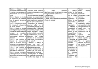 Este documento presenta la planificación microcurricular de una unidad didáctica sobre los seres vivos y los niveles de organización de la materia viva. La unidad se enfoca en describir las características de células animales y vegetales, identificar los niveles de organización de acuerdo a su complejidad, y comprender la supervivencia de las especies. Los estudiantes aprenderán a través de actividades como la observación microscópica y el análisis de modelos. Su aprendizaje será evaluado mediante pruebas escrit