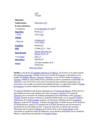El documento presenta un resumen de tres oraciones sobre el estado de Puebla en México: