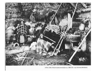 Los Mapuche se ubicaban originalmente entre los ríos Itata y Toltén en Chile. Probablemente descendían de migrantes mongoloides que llegaron a América hace miles de años. Su sociedad se basaba en el lov o comunidad, y anteriormente tenían una estructura matriarcal. Eran guerreros hábiles que usaban armas como arcos, lanzas y bolas de piedra. Creían en deidades como Ngenechen y realizaban ceremonias como el Machitún para la curación y el Nquillatún para pedir buenas cosechas.