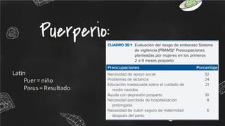Este documento resume los principales cambios fisiológicos que ocurren durante el puerperio o período posterior al parto. Describe la involución del útero y otros órganos reproductivos, el proceso de lactancia, los cuidados posparto en el hospital incluyendo atención del útero, vejiga y perineo, y consideraciones sobre anticoncepción y regreso de la fertilidad.