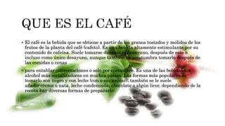 El documento detalla la importancia del café como una bebida social y sus beneficios para la salud, así como la creciente cultura del café gourmet. Se menciona la intención de la cafetería 'Puertas del Sol' de ofrecer café de alta calidad mediante la colaboración con productores, innovando en la preparación y servida de café. Además, se establecen estándares de calidad y servicios que cumplen con normativas internacionales para garantizar una experiencia única al consumidor.
