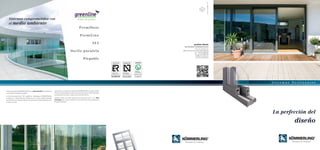 1) El documento describe varios sistemas deslizantes de puertas y ventanas de la marca Kommerling, incluyendo PremiDoor, PremiLine, SF3, oscilo-paralela y plegable.