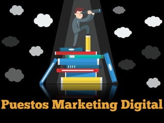 El documento detalla diversas posiciones laborales en marketing digital con rangos salariales y responsabilidades específicas, incluyendo roles como Marketing Digital Manager, Community Manager y Data Scientist. Cada puesto requiere habilidades particulares que abarcan desde el liderazgo y la programación hasta el análisis de datos y la optimización de campañas. También se mencionan referencias bibliográficas relevantes sobre el campo del marketing digital.