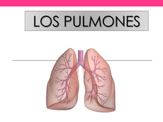 Los pulmones son órganos pares ubicados en la caja torácica que realizan la función de intercambio gaseoso. Están recubiertos por la pleura y divididos en lóbulos. Cumplen la función respiratoria de intercambiar oxígeno y dióxido de carbono con la sangre a través de los alvéolos, y la función de filtro. Pueden verse afectados por enfermedades como la neumonía, el cáncer o el neumotórax.