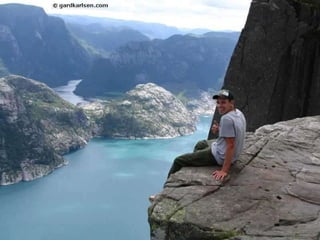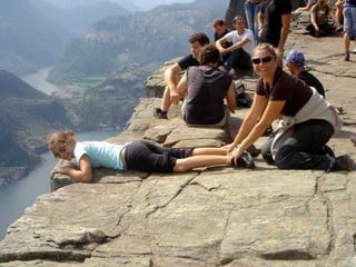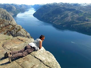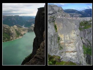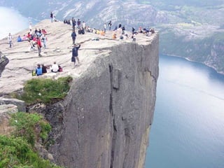 Preikestolen, conocido como "El Púlpito", es una formación rocosa situada cerca de Stavanger, Noruega. Se eleva 600 pies sobre el fiordo Lysefjorden y ofrece espectaculares vistas. Aunque el camino de acceso está bien señalizado, requiere buena condición física y equipo adecuado debido a la altitud y las pendientes empinadas. La caminata de ida y vuelta dura aproximadamente 2 horas y lleva a los visitantes a lo alto de la formación rocosa para disfr