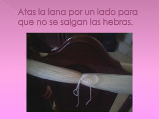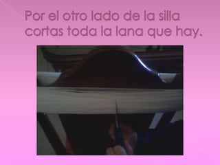 El documento habla sobre cortar lana y dejarla preparada en una madeja entera para el pulpo.