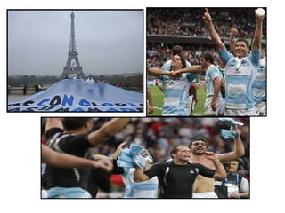 El documento anima al apoyo de los Pumas, el equipo nacional de rugby de Argentina. Usa frases como "No te vas a arrepentir" y "¡¡¡¡Viva el rugby carajo!" para enfatizar el entusiasmo por el equipo. Finaliza expresando afecto por Elisa.