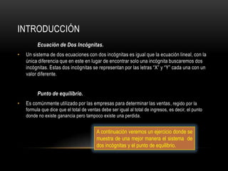 El documento presenta tres problemas relacionados con el cálculo del punto de equilibrio para una empresa fabricante de computadoras. En el primer problema, se calcula el punto de equilibrio cuando el costo de producción es de $2,800 por unidad y el precio de venta es de $3,500 por unidad, obteniendo aproximadamente 1,100 unidades. En el segundo problema, el costo aumenta a $3,020 por unidad, por lo que es necesario aumentar el precio de venta a $3,700 para mantener el punto de equilibrio. En el tercer problema, se
