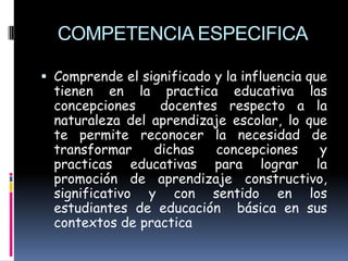 Este documento presenta dos situaciones para analizar las concepciones de docentes sobre el aprendizaje y factores que afectan el aprendizaje escolar. La primera situación involucra aplicar un cuestionario y analizar resultados para identificar las teorías implícitas más comunes. La segunda situación examina cómo la escuela y el docente influyen en el aprendizaje y propone actividades como ver un video y analizar un caso para explorar estos temas.