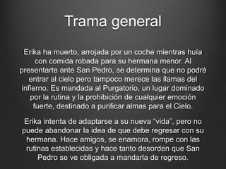 Erika muere atropellada después de robar comida para su hermana. Es enviada al Purgatorio, un lugar destinado a purificar almas antes del cielo. Erika se enamora de Alan pero rompe las reglas establecidas, atrayendo la atención de San Pedro. Finalmente, Erika, Alan e Isabel son devueltos a la vida mortal, pero bajo supervisión para asegurarse de que sigan el camino correcto.