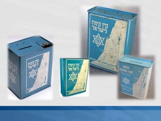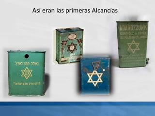 La alcancía representa la conexión entre los hogares judíos de todo el mundo y la Tierra de Israel. Originalmente las alcancías eran pequeñas, pero han evolucionado con el tiempo para simbolizar la unión entre el pueblo judío y su patria histórica.