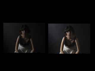 Este documento presenta diferentes técnicas de iluminación para estudios fotográficos, incluyendo luz frontal, luz de 3/4, luz lateral con y sin relleno, contraluz para silueta y borde, iluminación cenital, nadir, y técnicas de iluminación clásica como triángulo simétrico y asimétrico con contrastes abierto y cerrado.