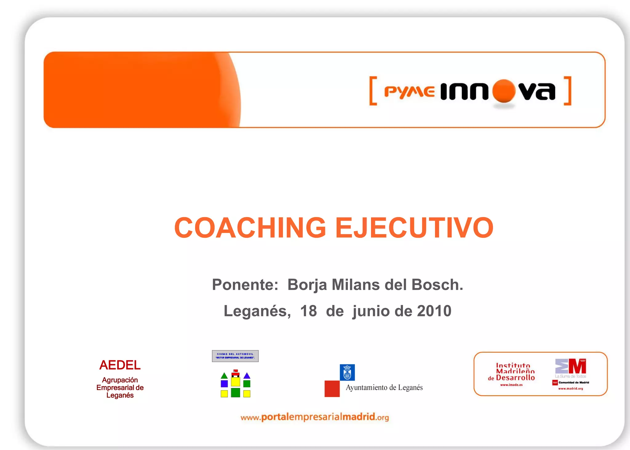 Este documento resume una presentación sobre coaching ejecutivo. Explica que el coaching es facilitar el proceso por el cual una persona logra sus metas a través de la conversación. También describe cómo el coaching puede ayudar a identificar obstáculos, desarrollar potencial y mejorar motivación. Finalmente, destaca que el coaching permite aprender nuevas formas de pensar y desarrollar actitudes positivas.
