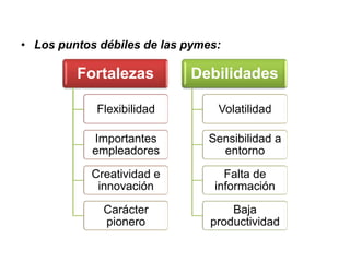 El documento discute las debilidades comunes de las pymes, el proceso de gestión estratégica de cuatro pasos (planificar, implementar, controlar y ajustar) y la definición y estructura de un plan estratégico. El plan estratégico sirve para definir objetivos, desarrollar estrategias y localizar recursos, formalizando las líneas maestras de actuación de una organización para lograr sus objetivos a través de acciones detalladas.