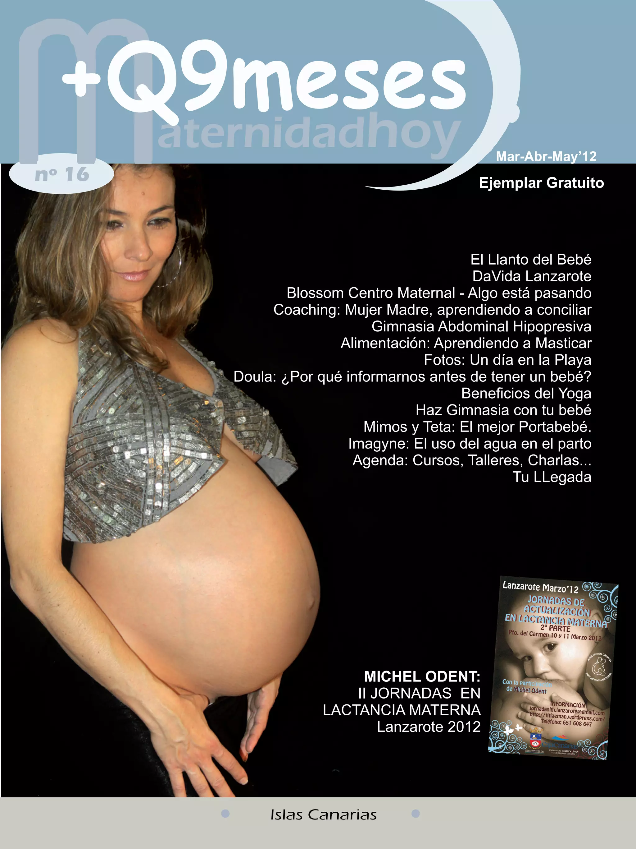 Este documento presenta información sobre varios temas relacionados con el embarazo, el parto y la crianza de bebés. Incluye un artículo sobre el llanto de los bebés y por qué lloran, una descripción de un nuevo centro llamado DaVida Lanzarote que facilita el proceso de maternidad, y una agenda con cursos y talleres disponibles.