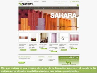 Más que cortinas es una empresa dedicada a la decoración del hogar, especializada en la producción y comercialización de cortinas personalizables de diversos tipos. Su misión es ofrecer productos innovadores que satisfagan las necesidades de un consumidor exigente. Los clientes pueden realizar pedidos por teléfono o a través de su sitio web.