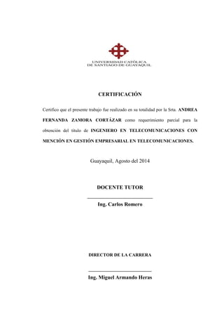 Este documento presenta un trabajo de titulación para optar por el título de Ingeniero en Telecomunicaciones con mención en Gestión Empresarial. El trabajo evalúa el control de tráfico y calidad de servicio en redes de datos usando la tecnología MikroTik. El documento incluye una introducción al tema, marco teórico sobre redes de acceso, calidad de servicio, y dos escenarios de evaluación usando colas simples y árbol de colas. El trabajo concluye con recomendaciones para mejorar el control de tr