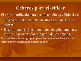 Elcriterio utilizado para clasificar sólo es válido si es: