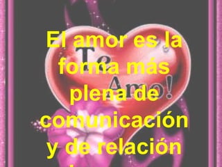 El documento habla sobre el amor y sus diferentes formas como el amor erótico, la amistad y el amor incondicional. También discute el noviazgo, sus errores como la idealización y la prisa por las relaciones sexuales. Cuenta la historia de cómo el Amor pide ayuda a diferentes sentimientos cuando su isla se hunde y solo el Tiempo lo salva porque solo él puede decir si un amor es verdadero.