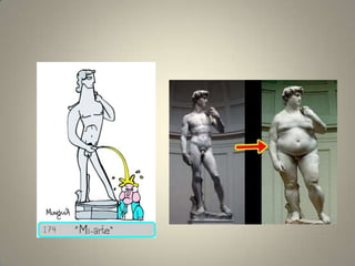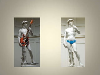 El documento presenta tres obras maestras del arte renacentista: La Gioconda de Leonardo da Vinci, el David de Miguel Ángel y La última cena, también de Leonardo da Vinci.