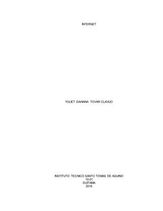 Este documento proporciona información sobre Internet. Explica qué es Internet, su historia, cómo funciona, sus características, quién crea la información en Internet, los servicios y aplicaciones disponibles como buscar información, consultar servicios públicos, acceder a bases de datos y leer periódicos. También define términos como protocolo, acceso a Internet y explica lo necesario para conectarse a Internet como un terminal, conexión y módem.