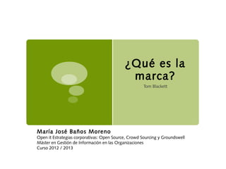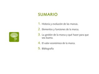 El documento trata sobre la evolución y gestión de las marcas, destacando su identidad, distinción y valor económico. Se enfatiza en la necesidad de generar confianza y satisfacción entre los grupos de interés, así como en la importancia de una estrategia de marca clara en el contexto digital. Además, se señala que una correcta gestión de la marca puede convertirla en un activo valioso para la empresa.