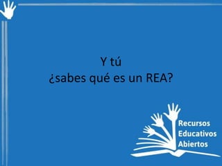Un REA (recurso educativo abierto) es un material destinado al proceso de enseñanza-aprendizaje que se distribuye bajo condiciones de libre acceso y modificación, promoviendo el conocimiento sin restricciones económicas. Estos recursos se caracterizan por ser gratuitos, abiertos y libres, y pueden encontrarse en internet y en instituciones financiadas por los impuestos. Ejemplos de REAs incluyen iniciativas como OpenCourseWare del MIT y proyectos de Creative Commons en México.