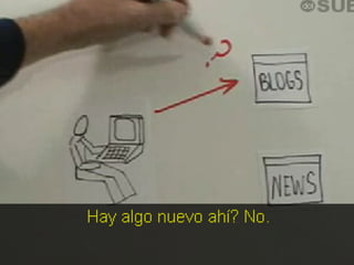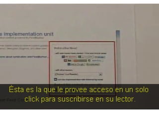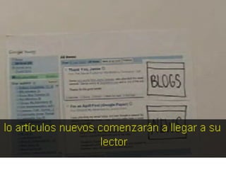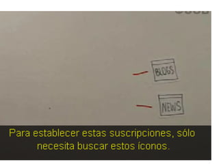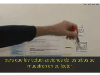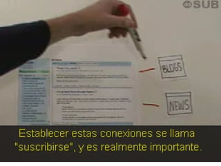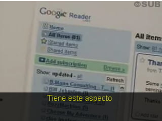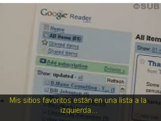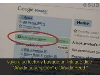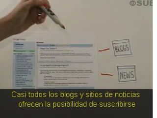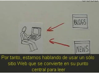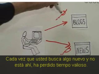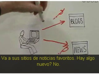 Este documento explica el concepto de RSS (Really Simple Syndication) en tres pasos: 1) Suscribirse a un lector de RSS gratuito como Google Reader para centralizar la lectura de contenido; 2) Suscribir el lector a sitios de noticias y blogs favoritos mediante los enlaces RSS disponibles; 3) Comenzar a recibir automáticamente las actualizaciones de esos sitios en el lector, permitiendo estar al día de manera más eficiente que visitando los sitios individualmente.