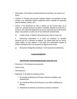 Un almacén es un espacio para guardar mercancía y realizar otras funciones como acondicionamiento de productos. Un almacén se encarga de almacenar stock pero no gestiona el stock, sino que intenta realizar operaciones de almacenamiento con los mínimos recursos. Existen varios tipos de almacenes según la utilización como de materias primas, productos en proceso de producción o productos terminados, y según la construcción como naves, depósitos para líquidos o granulados, o locales varios.