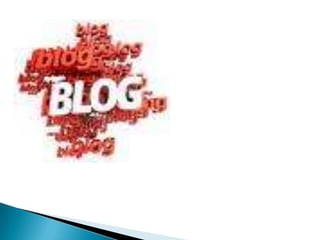 Un blog es un sitio web que recopila cronológicamente artículos de uno o más autores, mostrando primero el más reciente, y donde los lectores pueden comentar y dialogar. Los blogs cubren diversos temas como personas, empresas, tecnología o educación. Se estima que se crean 175,000 nuevos blogs diarios.
