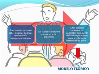Este documento describe los principios fundamentales de un modelo teórico científico. En pocas oraciones, un modelo teórico es un conjunto coherente de proposiciones que tiende a reducir disputas y es analítico en lugar de descriptivo, buscando comprender la realidad de una manera más profunda e inteligible. Un modelo teórico ideal es sintético y añade nuevos elementos en lugar de simplemente yuxtaponer o mezclar ideas preexistentes.