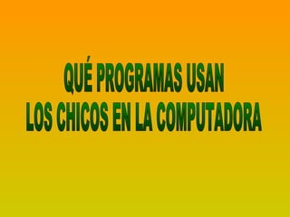 El documento describe varios programas y sitios web que usan los niños y adolescentes en Internet, incluyendo redes sociales, juegos en línea, correo electrónico y mensajería instantánea. También destaca tanto los beneficios de estas herramientas para la comunicación y entretenimiento, como los posibles riesgos de contacto con extraños, ciberacoso y exposición de información personal. Se proveen recomendaciones para promover el uso seguro y responsable de la tecnología.