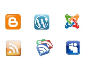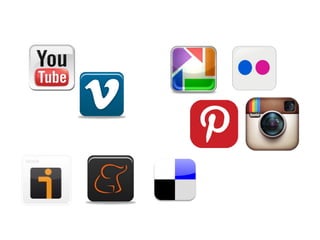 El documento menciona diversas herramientas TIC, incluyendo redes sociales como Facebook y Twitter, gestores de contenido como WordPress y Joomla, y aplicaciones de organización como Evernote y Dropbox. Destaca la importancia de conocer y evaluar qué plataformas son útiles para cada usuario en lugar de estar presente en todas. Se enfatiza la variedad de recursos disponibles en la web 2.0 para la comunicación y el almacenamiento.