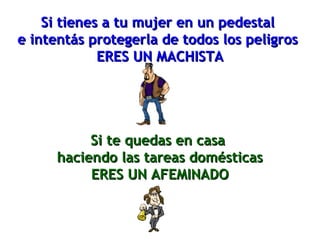 El documento argumenta que la vida del hombre es difícil porque siempre está siendo juzgado y criticado por las acciones que toma en su relación de pareja. Casi cualquier cosa que haga, como mostrar afecto, trabajar mucho, expresar emociones, o tener relaciones sexuales, es interpretado negativamente y juzgado como algo malo. Por lo tanto, el documento sugiere que es muy difícil para un hombre complacer a su pareja y evitar ser criticado.