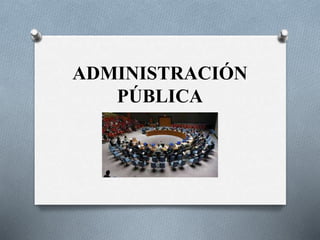 Este documento proporciona una introducción a varios conceptos clave relacionados con la administración pública, incluidas las diferencias entre administración pública centralizada y descentralizada, las funciones de la administración pública, las diferencias entre administración pública y privada, y el papel de la Constitución de Guatemala.