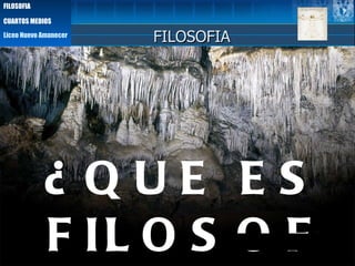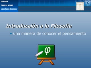 Este documento presenta una introducción a la filosofía. Explica que la palabra filosofía proviene del griego y significa "amor a la sabiduría". Detalla los orígenes griegos de la filosofía a través de pensadores como los presocráticos, Sócrates, Platón y Aristóteles. Además, define diversas ramas de la filosofía como la metafísica, epistemología, lógica, ética y estética. Finalmente, enumera diferentes tipos de filosofía como la filosofía