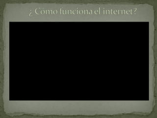 La Internet es una red informática descentralizada que conecta computadoras a través de un protocolo de comunicaciones, permitiendo compartir contenidos. Se define como una "red de redes" que interconecta no solo computadoras sino también redes de computadoras. Los navegadores web permiten visualizar la información en páginas web, y los buscadores permiten realizar búsquedas en la red ingresando palabras clave.