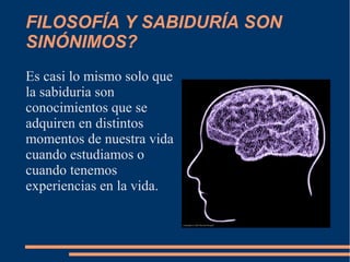 La filosofía se define como la reflexión sobre preguntas fundamentales acerca de la existencia, el conocimiento y la realidad. No es lo mismo que la sabiduría, ya que la filosofía implica cuestionar problemas del mundo a través del razonamiento en lugar de la experiencia. Aunque antiguamente se consideraba una ciencia, hoy se ve más como una herramienta para verificar temas complejos mediante el razonamiento en lugar de métodos científicos. La filosofía se relaciona con las ciencias al cuestionar sus teorías y métodos, y